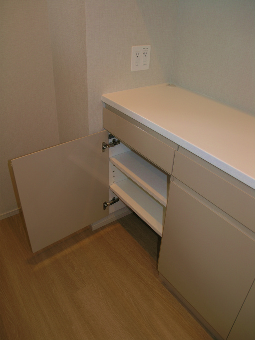左下の扉は普通の収納で使用したり、ゴミ箱を収納したり多目的