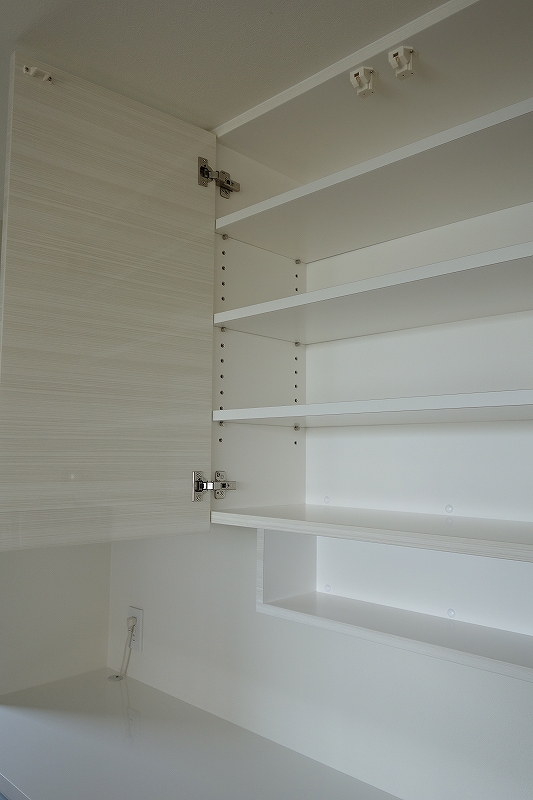 吊戸棚内部は可動棚に。扉は静かに閉まります。