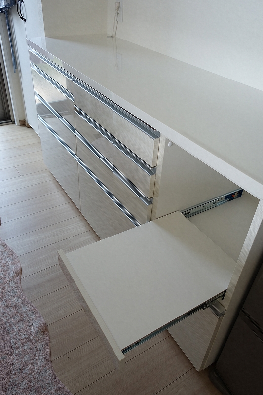 炊飯器用スライドテーブル。引出しはソフトクローズ仕様です。